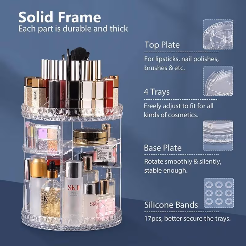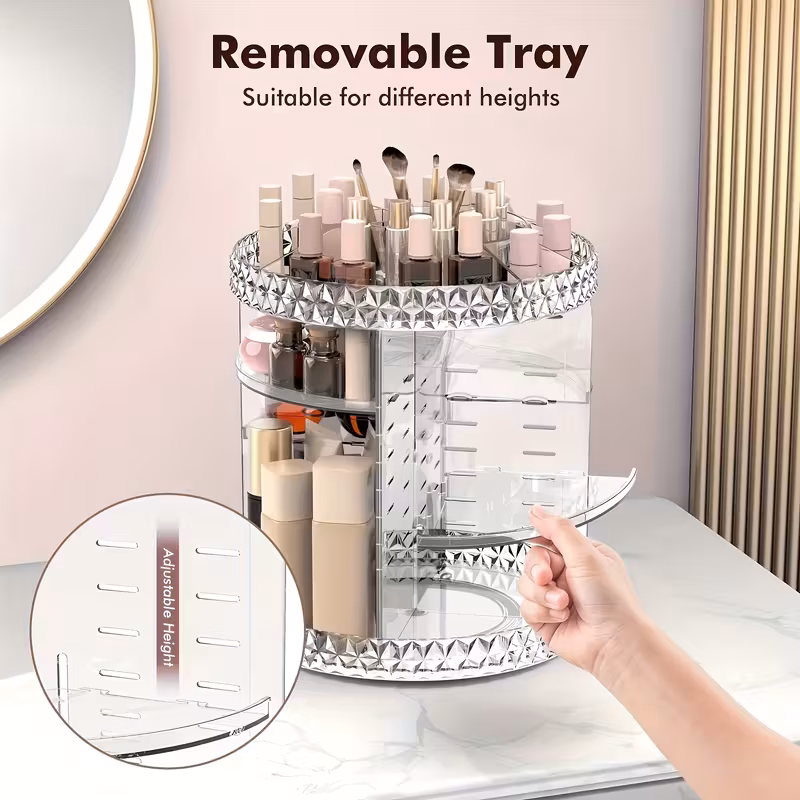 Kommt an in 5+ WERKTAGE. 360° Drehbarer Make-up Organizer mit 360-Grad-Drehfuß - Transparente Schminkbox, Kosmetik Organizer mit mehreren Fächern und Make-up Ablage auf der Oberseite, Platzsparender Schminktisch Organizer für Frauen, Keine Montage erforderlich, Elegante Badezimmer- oder Schminktischbox. GRATISVERSAND.