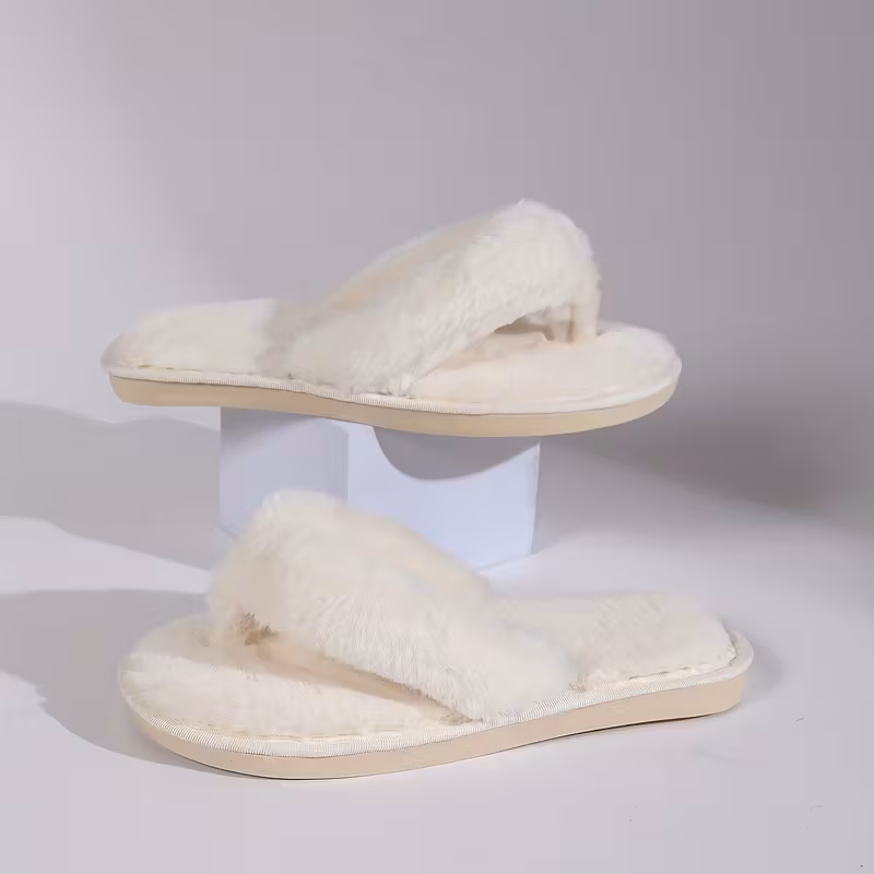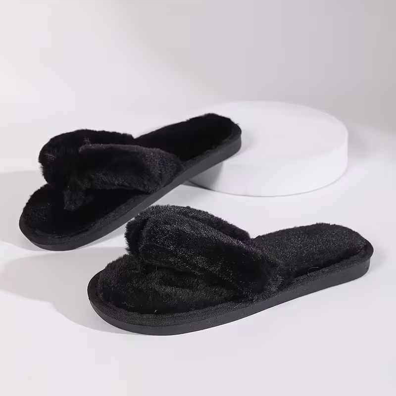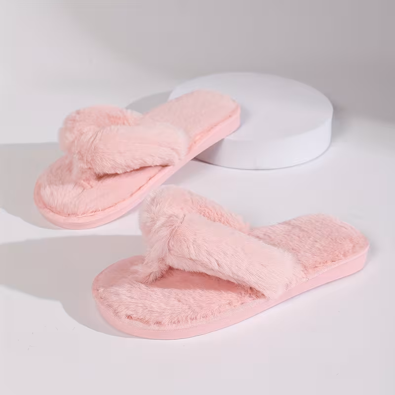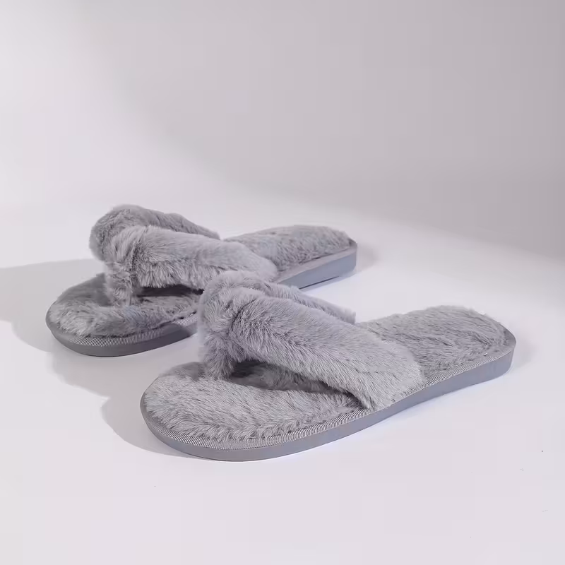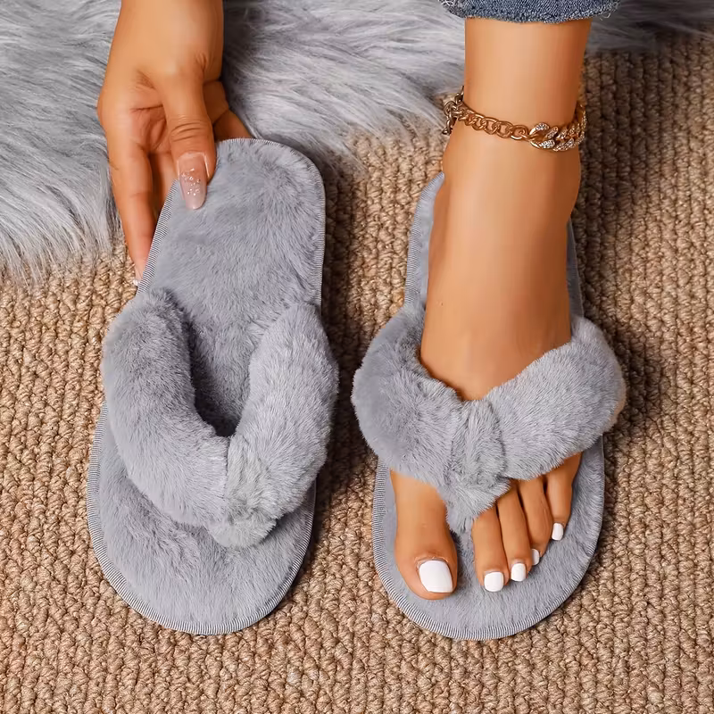 Plüsch-Slides für Damen - Weich, Warm, Rutschfest, Innen-Flip-Flops in 4 Farben (Weiß, Schwarz, Pink, Grau). 98% der Kunden sagen, dass der Artikel maßgenau passt.