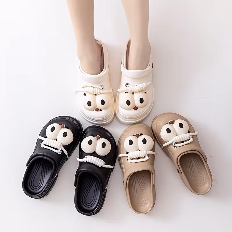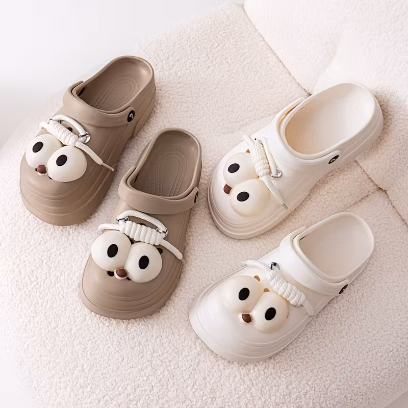 Damen Winter Hausschuhe - Niedliche Goofy Augen Pantoletten mit dicker Plateausohle, Slip-On Schuhe für Innen/Aussen. 94% der Kunden sagen, dass der Artikel maßgenau passt.